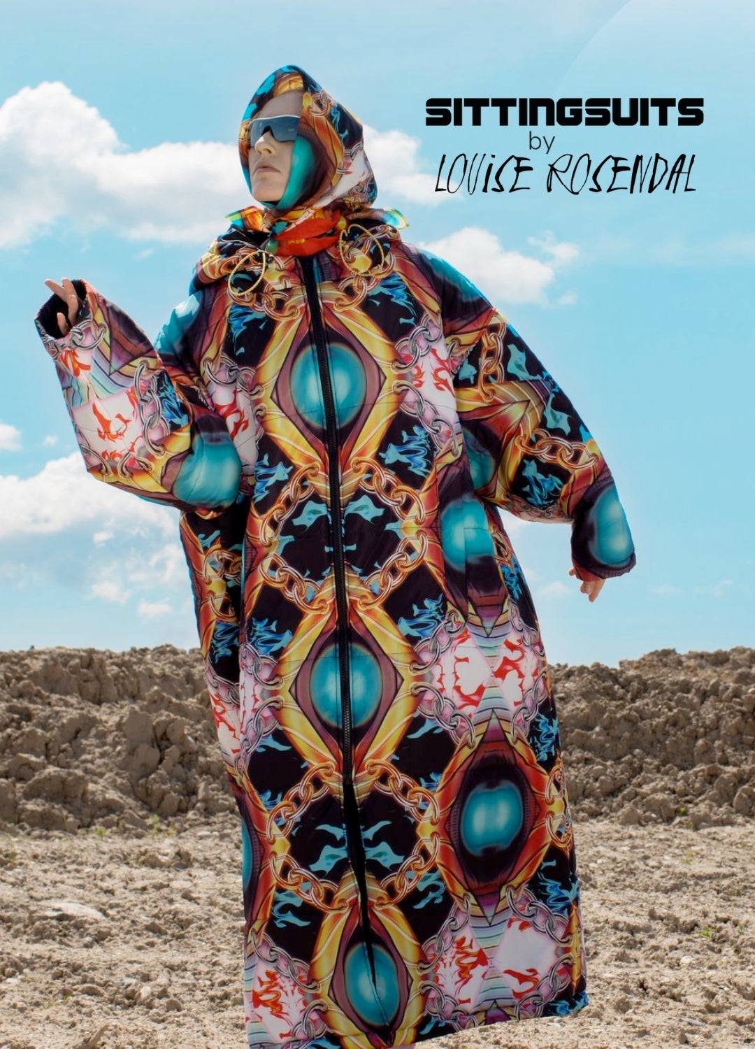 The collaboration with Sittingsuits is created from two scarves prints with the titles "Come Alive" & "Fireball". The inspiration for these prints springs from the same artistic universe and themes as those that Louise Rosendal works with.