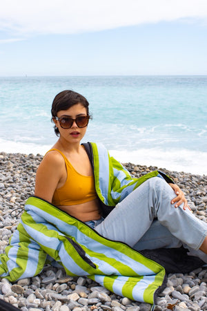 Crafted from high-quality materials, the Sittingsuit features padding made from 100% post-consumer recycled plastic bottles (RPET), certified by the Global Recycled Standard. The padding and fabrics are Oeko-Tex certified.